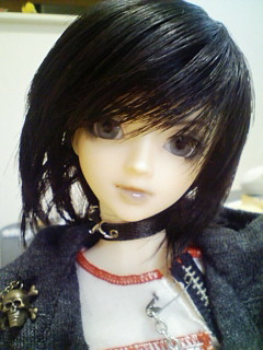 で、やっと竜がきました。旅行で不在だったから2日遅れてのお迎えだったんだけど昼前に無事到着しました。SDは久しぶりのお迎えだったのでドキドキしたわよ(爆)キュートは細身のせいかミニっ子よりも軽く感じたなぁ。で、メイクが綺麗な事!ゴスっぽいかもと思ってたんだけどうちに来た竜はそんな事なくて女の子にしても悪くないくらいの顔立ちでした。思った以上に私好みの顔だったのでベタ惚れでした。服を着せるのはちょっと大変だったけど着替え終わってマジマジと見た時にはもう凄く嬉しかった。ちょっとテンションが緩くても気にしない(爆)うちに来てくれた事が今は一番嬉しい♪